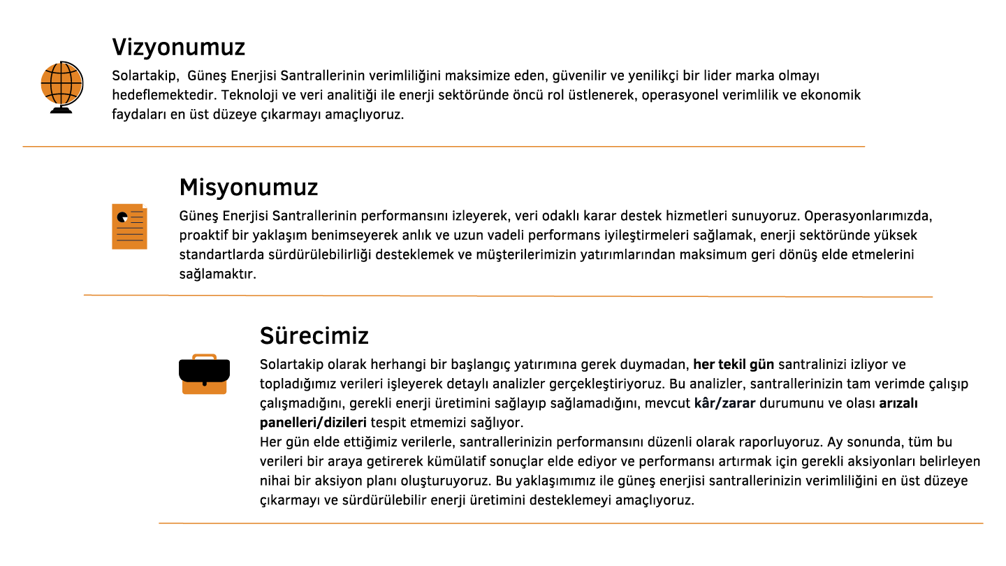 nihai bir aksiyon planı oluşturuyoruz. Bu yaklaşımımız ile güneş enerjisi santrallerinizin verimliliğini en üst düzeye